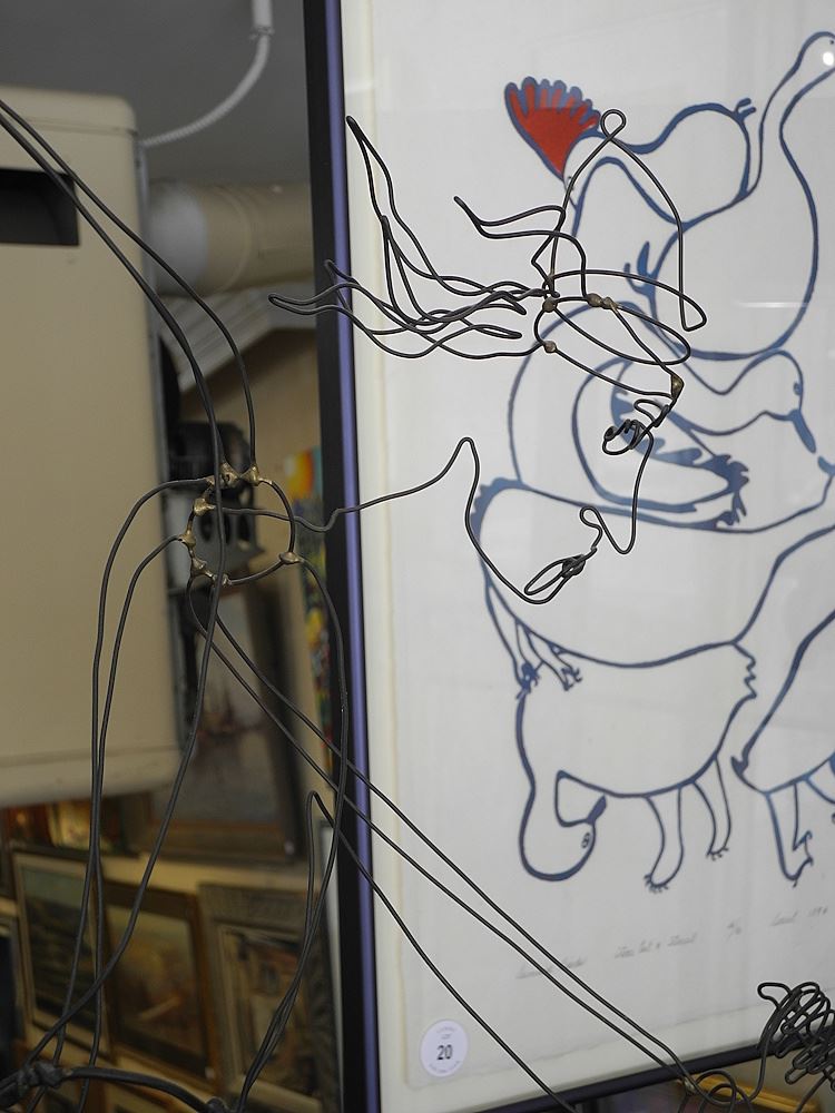 Wire Sculpture signed (Rudy) Kehkla, 40"h, "Skier with Plinth".