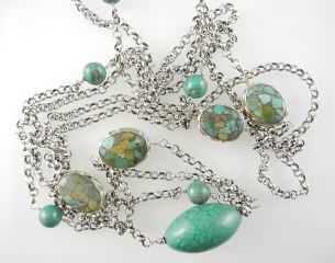 LOT 289 Unmarked 38" Silver Coloured Metal Turquoise Necklace. Estimate: $50 - $70 Auction Date: Tuesday, May 13 2025 at 4:00 PM