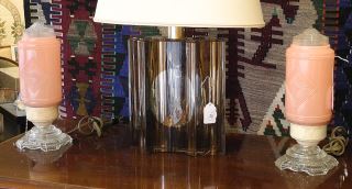 Pair of Vintage Glass Bedside Lamps.
