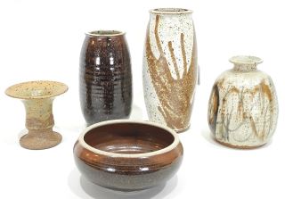 5 Stoneware Vessels With Impressed Mark by Robin Righton, 3 7/8 - 8 5/8" h.