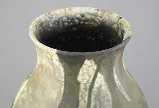 Raku Vase signed & Impressed Larry Aguilar, 10 1/2"h.