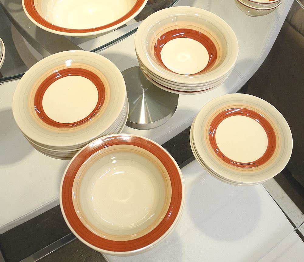 LOT 236 Susie Cooper Crown Works Burslem Pattern 1386 Pottery Dish Set. Estimate: $200 - $400 Auction Date: Tuesday, May 13 2025 at 4:00 PM