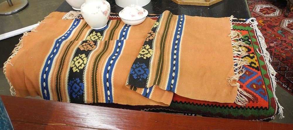 LOT 109 Kilim Carpet (apx.46 x 71") with 3 Flatweave Panels. Estimate: $50 - $100 Sold For: $35 Auction Date: Tuesday, September 16 2025 at 4:00 PM