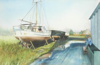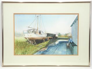 LOT 213 Watercolour signed P.(Peggy) Bwekosky, 13 x 19 7/8", "Slough at Steveston, B.C.". Estimate: $60 - $100 Sold For: $50 Auction Date: Tuesday, September 16 2025 at 4:00 PM