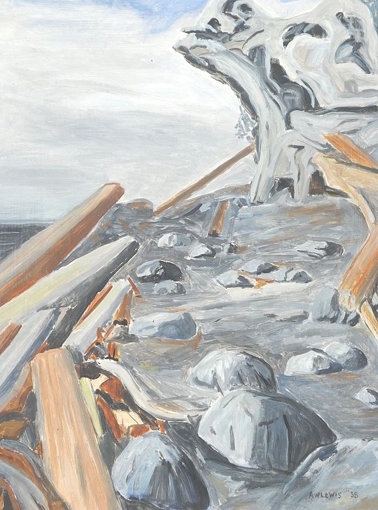 LOT 87 Oil on Board signed A.W.Lewis'58, 24 x 18", "Rocky Coastal Vista". Estimate: $60 - $100 Sold For: $40 Auction Date: Tuesday, September 16 2025 at 4:00 PM