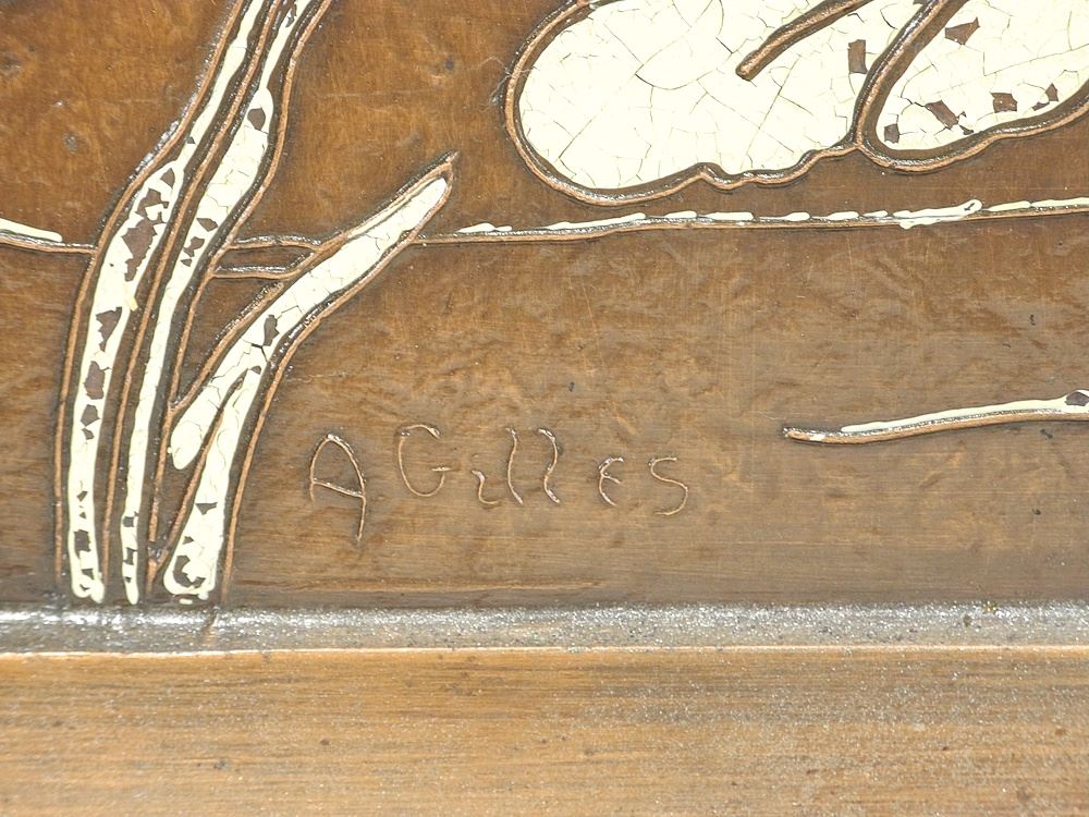 LOT 354 Copper Panel signed A. (Albert) Gilles, 40 x 16", "Asian Style Garden". Estimate: $50 - $100 Sold For: $30 Auction Date: Tuesday, September 16 2025 at 4:00 PM