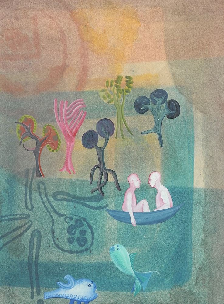 Mixed Media signed Indistinctly'65, 20 1/2 x 14 3/4", "Surreal Composition".