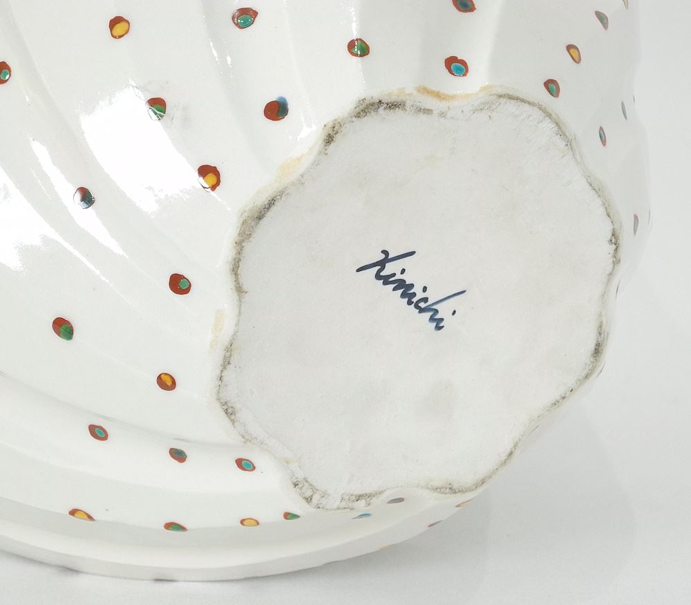 LOT 362 Dotted Pottery Swirl Vase signed Kinichi (Shigeno), 15 3/4 x 14 1/2 x 12 1/2". Estimate: $100 - $200 Sold For: $300 Auction Date: Tuesday, September 16 2025 at 4:00 PM