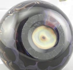 Art Glass Paper Weight signed (Mel) Munsen, 2 3/8 x 3 3/8" Diam.