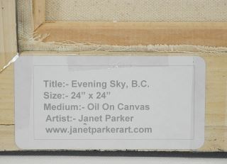 Oil on Canvas signed J.(Janet) Parker, 24 x 24", "Evening Sky B.C."