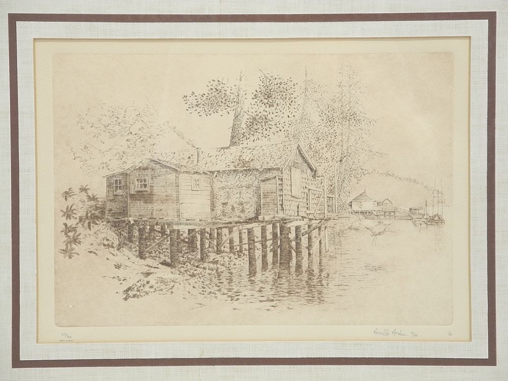 Etching signed Ronaldo Norden, 9 3/8 x 13 1/4", "Harbour Scene" #9/30, First State.