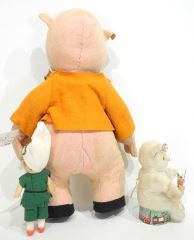 LOT 251 Warner Bros. "Porky Pig" Stuffy with Japanese Knitting Bear & Elf Doll, 5 3/4 - 16 1/2"h. Estimate: $50 - $60 Sold For: $25 Auction Date: Tuesday, September 16 2025 at 4:00 PM