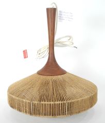 Fog & Morup Teak & Jute Light Fixture Design Ib Fabiensen, 16" Diameter.