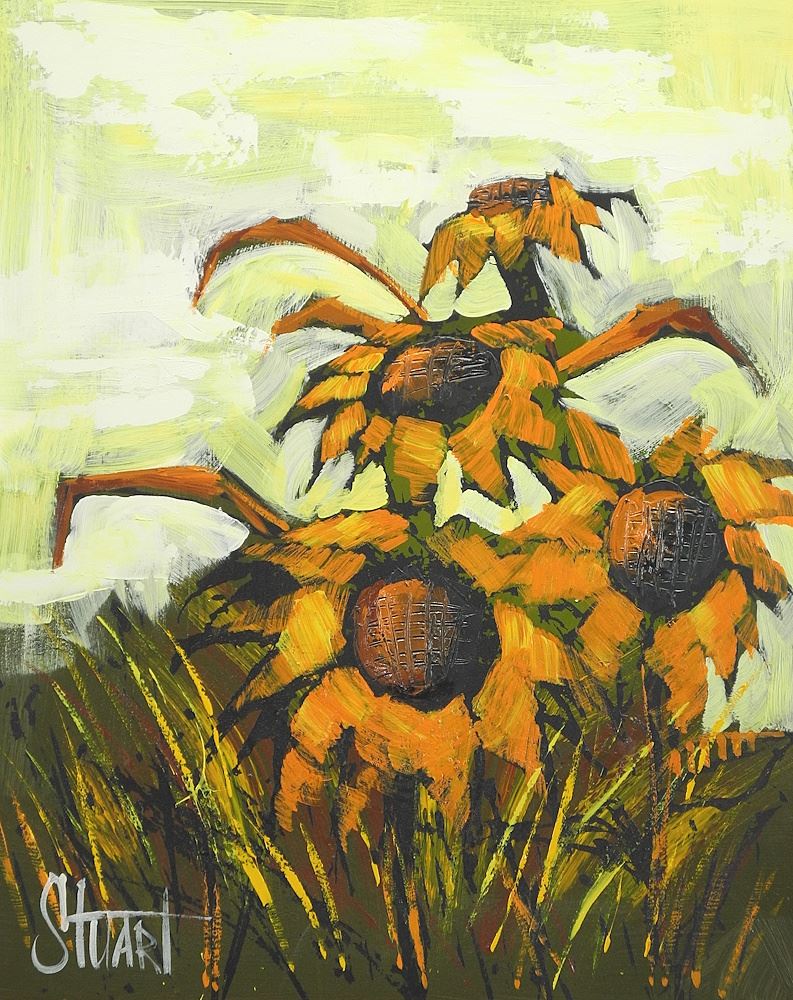 LOT 182 Oil on Board signed Stuart, 29 1/2 x 23 1/2", "Sunflowers". Estimate: $60 - $100 Sold For: $60 Auction Date: Tuesday, September 16 2025 at 4:00 PM