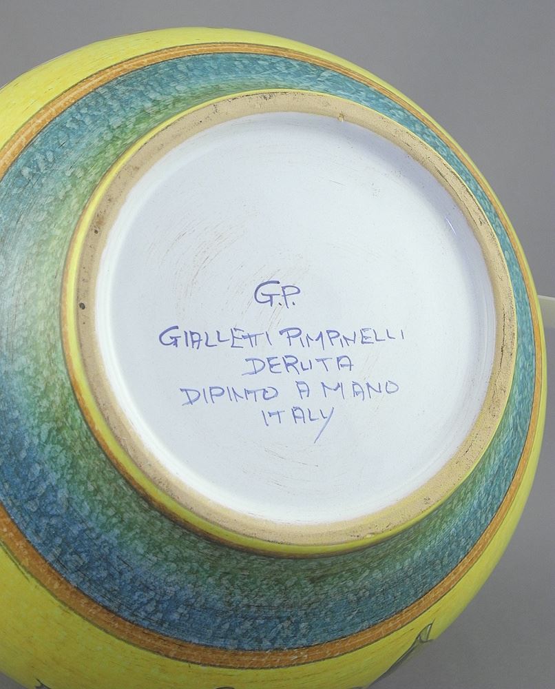 Gialletti Pimpinelli Deruta Pottery Pitcher, 12"h.