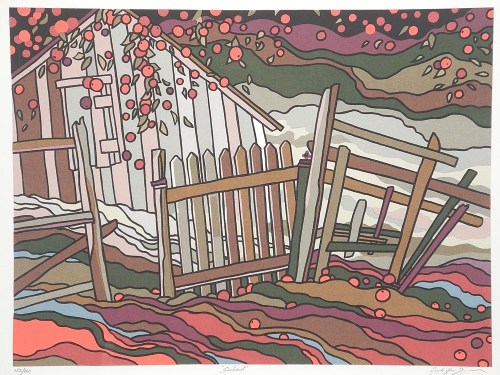Unframed Serigraph signed Deryk Houston, Approximately 23 x 30", "Orchard" #133/160.