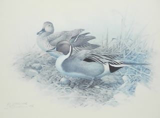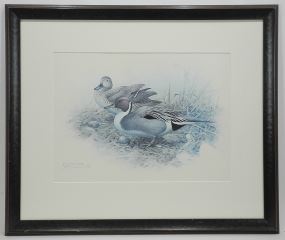 LOT 228 LEP signed J.F. (James Fenwick) Lansdowne, 13 x 17 3/4", "Pintail Ducks" A/P #7/50 (faded). Estimate: $50 - $60 Sold For: $20 Auction Date: Tuesday, September 16 2025 at 4:00 PM