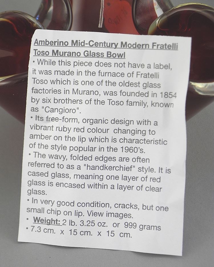 Fratelli Toso Murano Glass Bowl, 2 5/8"h.