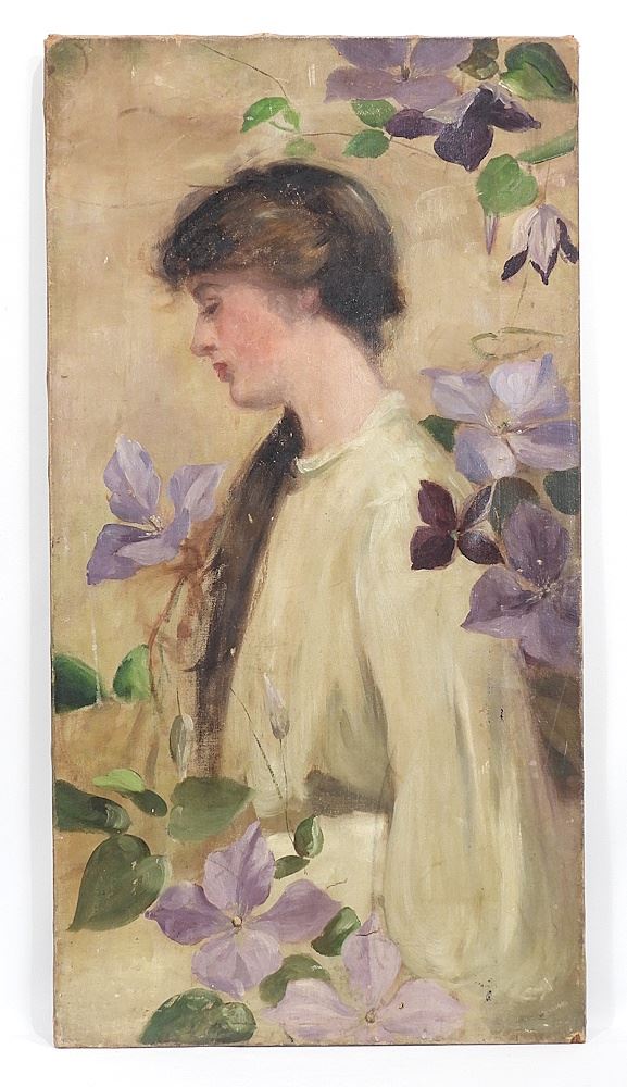Unsigned Oil on Canvas, 34 x 18", C.1900, "Youthful Beauty In Profile"