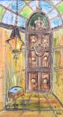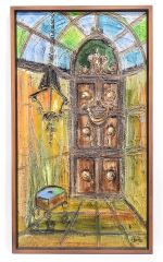 LOT 205 Oil on Board signed V. (Van) Hoople, 35 1/2 x 19 1/4", "Doorway With Lantern". Estimate: $100 - $200 Auction Date: Tuesday, March 24 2026 at 4:00 PM