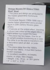 Archimede Seguso Style Murano Glass "Clam" Bowl, 4 1/8"h.