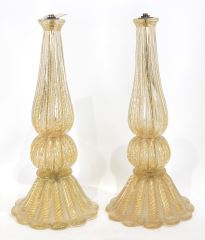 Pair of Barovier & Toso Style Gold Aventurine Murano Glass Lamp Bases, 15 1/2"h.