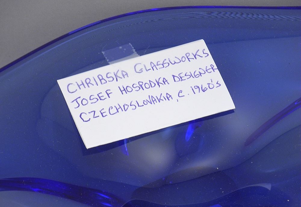 LOT 200 Chribska Glass Works Blue Glass Dish , Josef Hospodka, 13 1/2"L. Estimate: $50 - $60 Auction Date: Tuesday, March 24 2026 at 4:00 PM