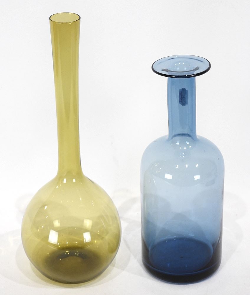 Two Glass Vases: Gullaskruf & Holmegaard Style, 11 3/4 & 9 3/4"h.