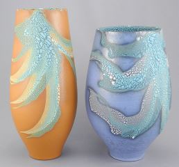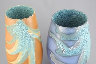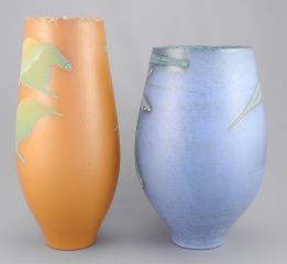 Two Vases signed (Mary) Fox, 9 1/4 & 10 1/4"h (rims nibbled).