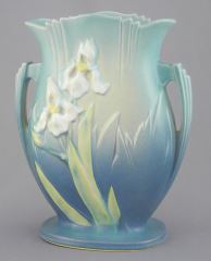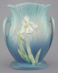 Roseville "Iris" Handled Vase, 8 1/4"h.