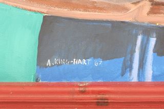 LOT 173 Acrylic on Board signed A. (Annabel) King-Hart '67, 38 x 27 1/2", "Lady With Pitch Fork". Estimate: $100 - $200 Sold For: $100 Auction Date: Tuesday, March 24 2026 at 4:00 PM
