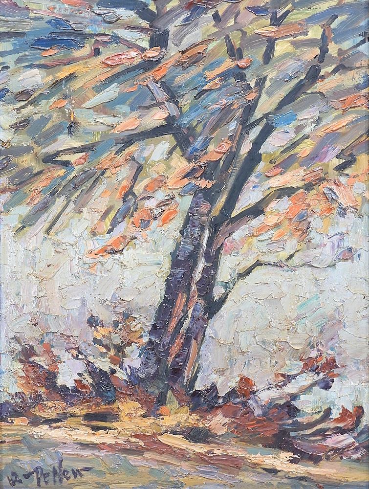 LOT 220 Oil on Board signed * DeNew, 23 x 17 ", "Tree Advancing Against Wind". Estimate: $50 - $150 Sold For: $120 Auction Date: Tuesday, March 24 2026 at 4:00 PM