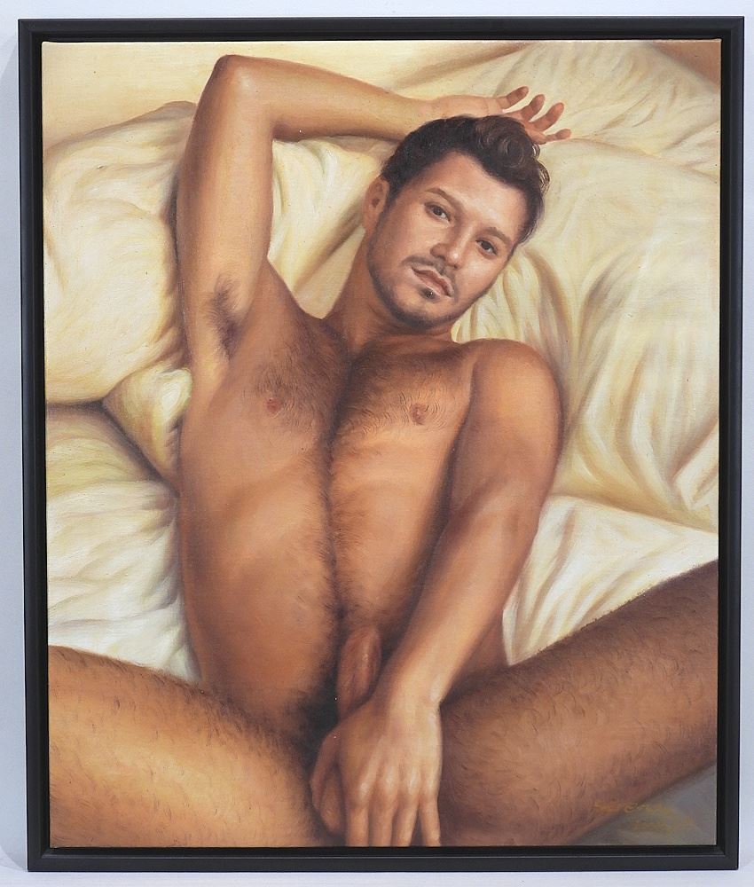 Two Chinese School on Canvas, signed Serena, 24 x 20", "Homoerotic Subjects".