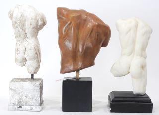 Three Reproduction Classical Statues , Male Torsos, 13 3/4 - 15 1/4"h.
