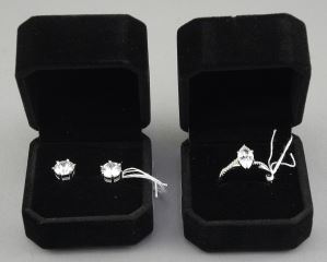 CZ Marquise Cut Twist Ring (size 8) & Earrings Mounted in Sterling with White Gold Overlay.