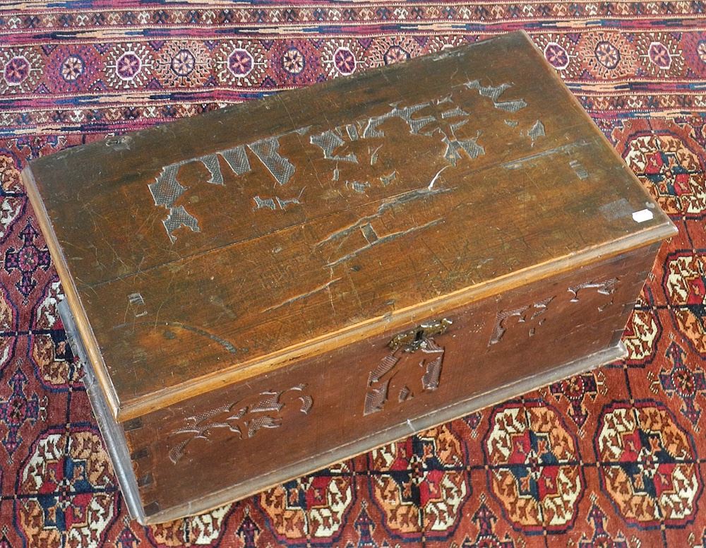 19th C. Carved Oak Chest, 23 1/2 x 12 3/4 x 9 1/2".