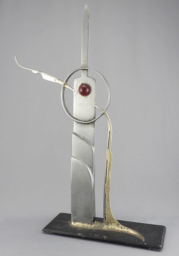 LOT 327 Art Metal Sculpture Set with Red Jewel, Unsigned, 19"h. Estimate: $60 - $80 Auction Date: Tuesday, March 24 2026 at 4:00 PM
