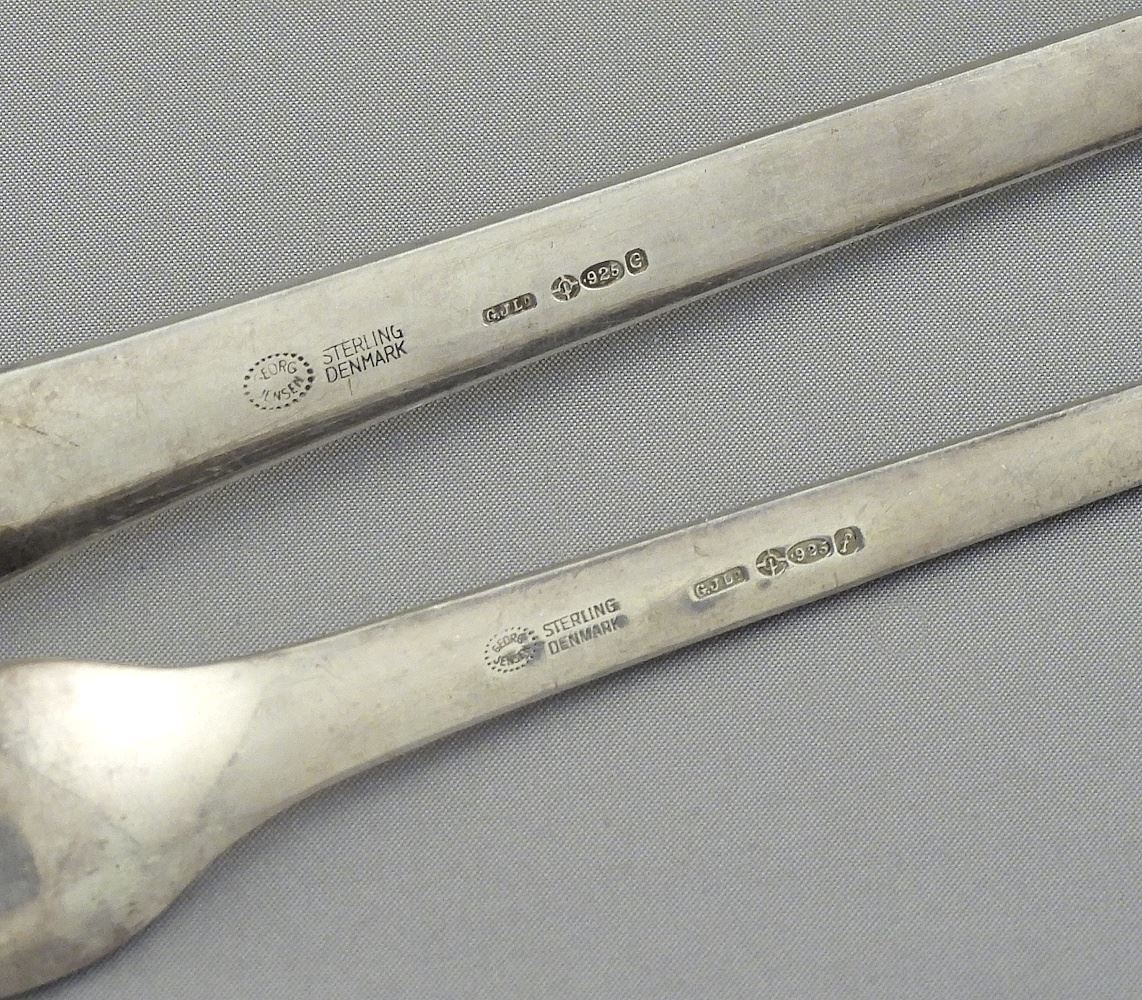 LOT 65 Two Georg Jensen Hallmarked Silver Forks, 5 7/8 & 8 1/4"L, 84.6g. Estimate: $140 - $180 Sold For: $160 Auction Date: Tuesday, March 24 2026 at 4:00 PM