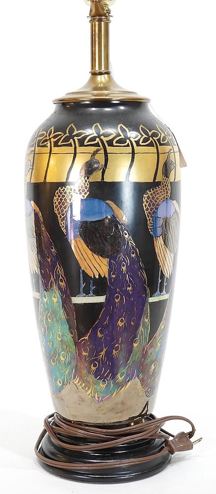 Art Nouveau "Peacock" Lamp Possibly Thomas Forester & Sons, 20 1/2"h.