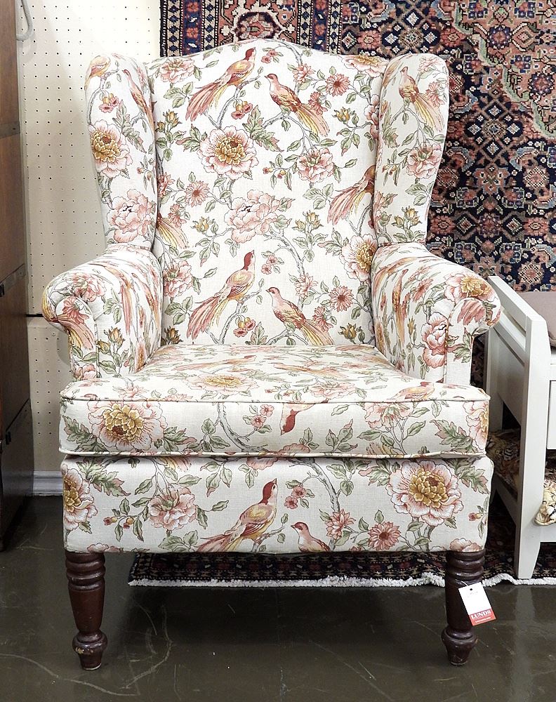 LOT 113 Chintz Upholstered Wingback Armchair Estimate: $50 - $100 Sold For: $100 Auction Date: Tuesday, March 24 2026 at 4:00 PM