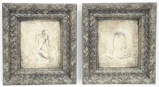 Three Composition Plaques by Zerat, 8 3/8 x 7 1/2", "Figure Studies".