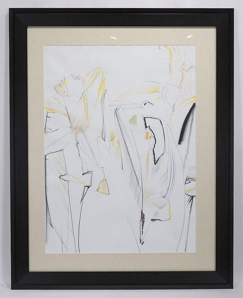 LOT 219 Mixed Media signed D. (Dirk) Van Wyk 28 3/4 x 21" "The Making of a Question". Estimate: $150 - $300 Auction Date: Tuesday, March 24 2026 at 4:00 PM