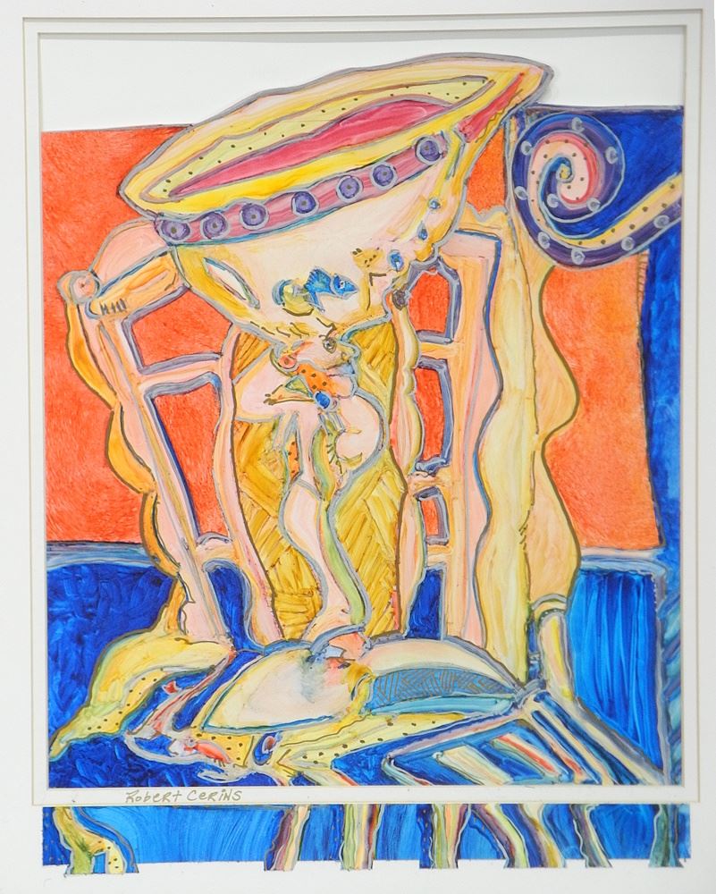 LOT 107 Mixed Media on Paper signed Robert Cerins, Sight 14 1/4 x 11 1/4", "Sumptuous Goblet". Estimate: $50 - $60 Sold For: $25 Auction Date: Tuesday, March 24 2026 at 4:00 PM