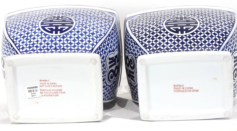 LOT 322 Pair of Bombay Co. Blue & White Porcelain Covered Vases, 13 1/2"h. Estimate: $50 - $60 Sold For: $15 Auction Date: Tuesday, March 24 2026 at 4:00 PM