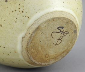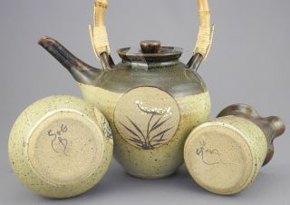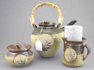 Stoneware Tea Set Monogrammed S & G B (Scott & Garnet Beardsley), Pot 6 3/4"h.