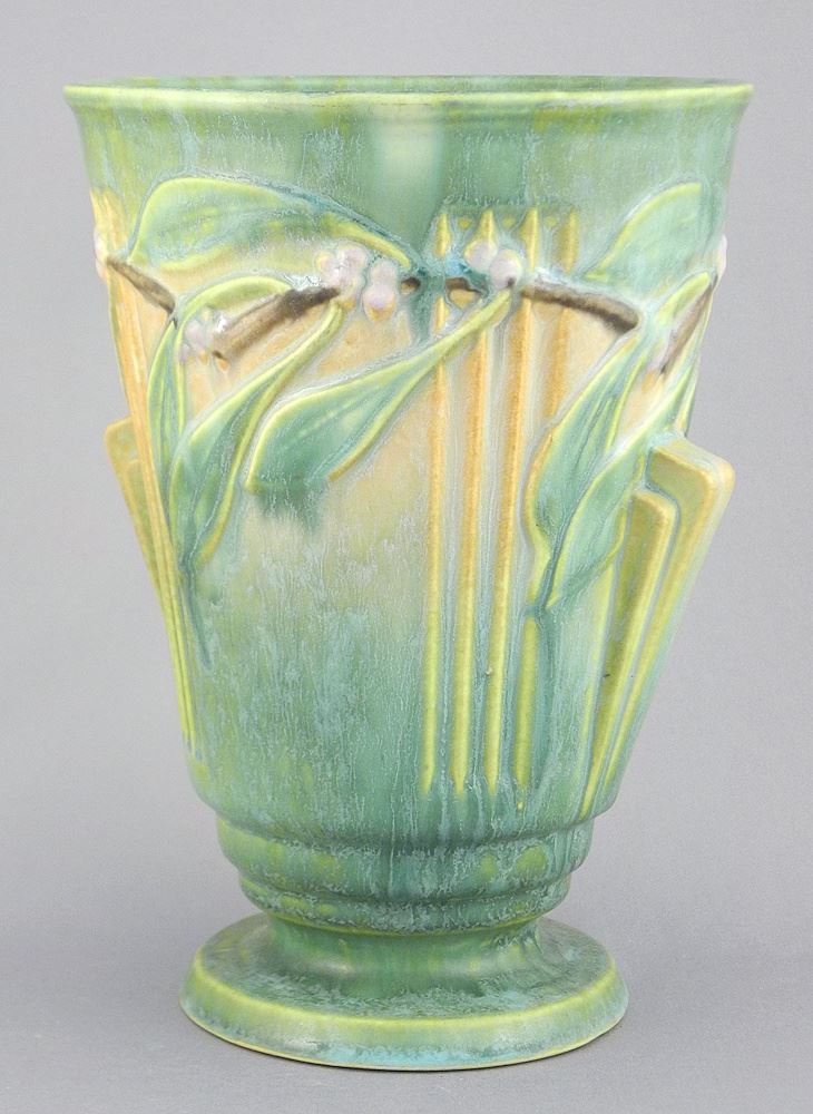 LOT 14 Roseville "Laurel" Vase, 8 1/4"h. Estimate: $60 - $100 Sold For: $150 Auction Date: Tuesday, March 24 2026 at 4:00 PM