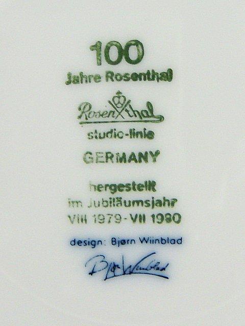 Pair of Rosenthal china chargers with designs by Bjorn Winblad, diameter 13in.