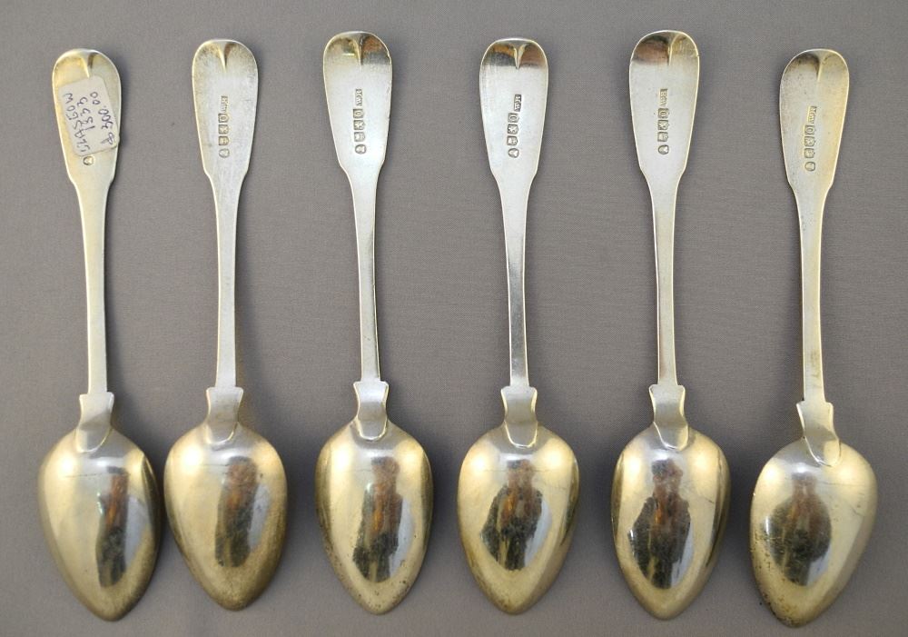 Set of Six Georgian Silver Teaspoons, Glasgow 1833.
