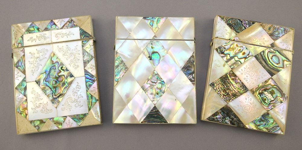 LOT 378 Three 19th Century Card Cases Decorated in M.O.P.(1 with losses) & Abalone, 4 1/4"-No Export Estimate: $250 - $350 Auction Date: Tuesday, November 22 2022 at 6:00 PM
