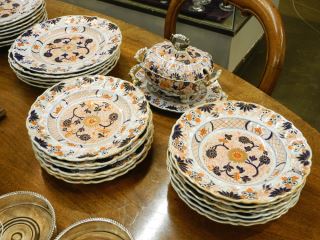 LOT 159 Mason's Ironstone Imari Dinner Service, C.1830, Tureen/ Platters/ Plates/ Soup Plates Estimate: $500 - $1,000 Sold For: $700 Auction Date: Tuesday, November 22 2022 at 6:00 PM